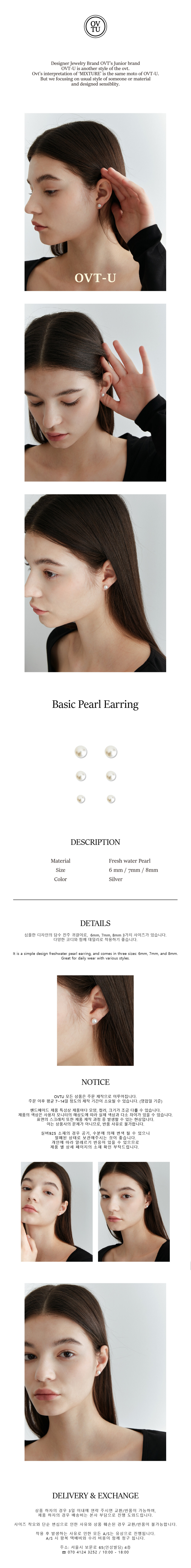 [925 SILVER] Basic Pearl Earring (Size: 6mm, 7mm, 8mm)