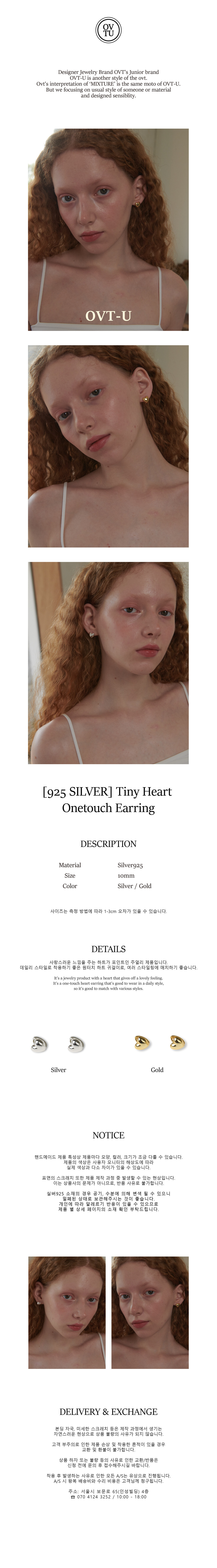 [925 SILVER] Tiny Heart Onetouch Earring