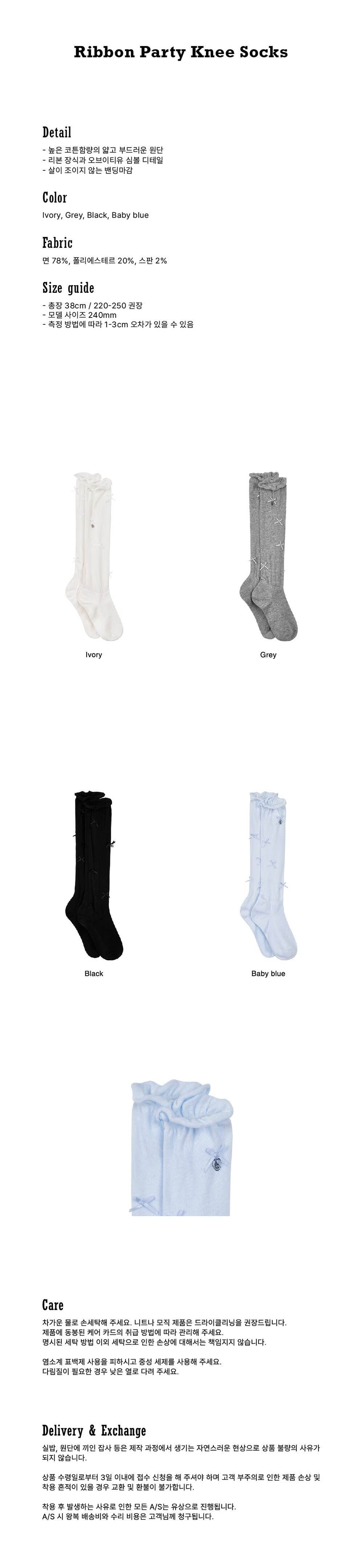 Ribbon Party Knee Socks (4colors)