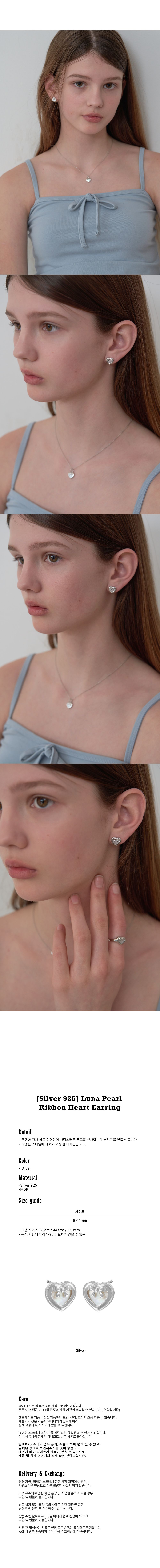 Silver 925 Luna Pearl Ribbon Heart Earring